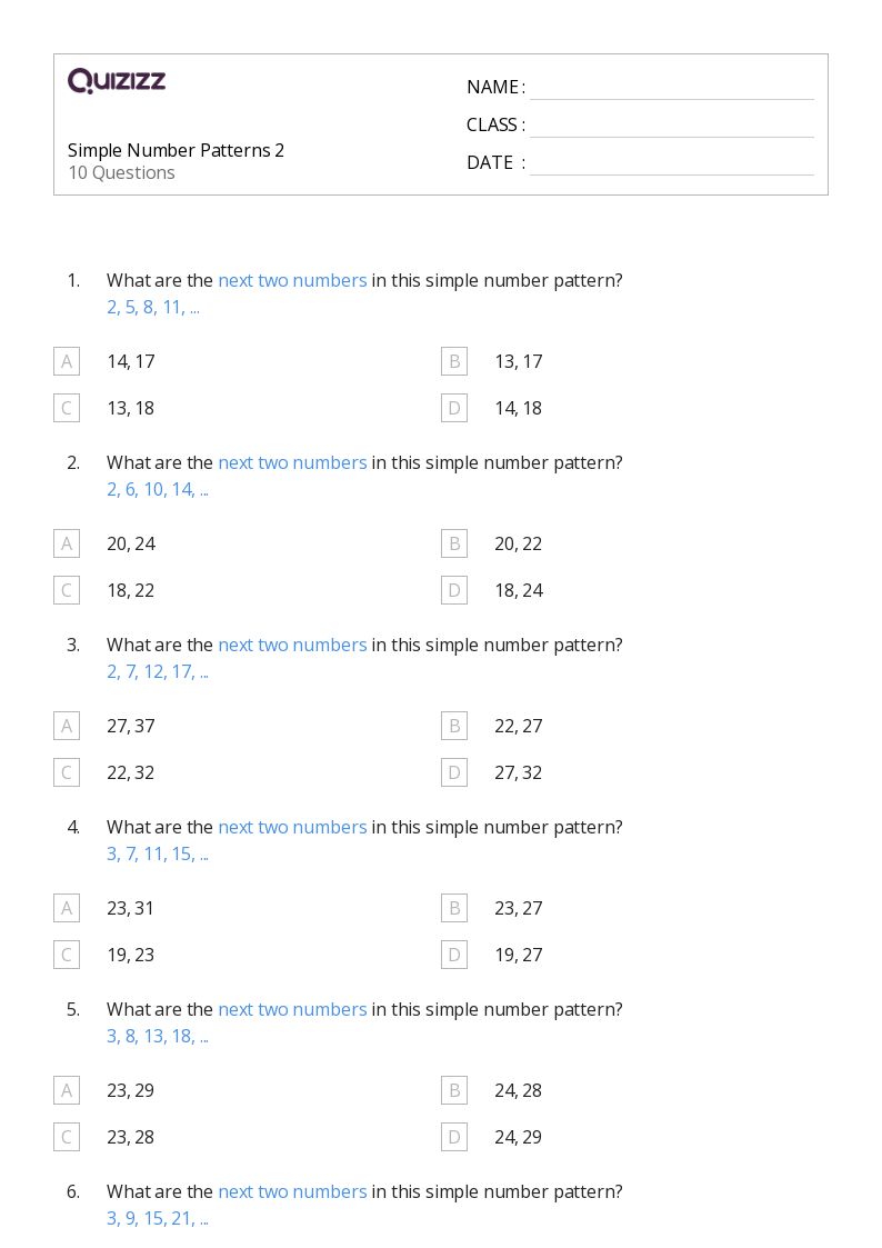Welcome on our page, explorer! We are happy to have you here and offer a variety of engaging resources with you. If you're just joining us, or if you've been here before, we are grateful for your presence and can't wait for your discovery with us. Prepare to dive in a wide variety of posts on Number patterns worksheets pdf grade 5, videos related to grade 5 number patterns worksheets, pictures showcasing 50+ number patterns worksheets for 5th grade on quizizz, and extra resources on 50+ number patterns worksheets for 5th grade on quizizz. Feel free to explore and find topics that entertain you. Our objective is to offer valuable content that encourages and elevates your time on our site. So get started and enjoy this ride together!